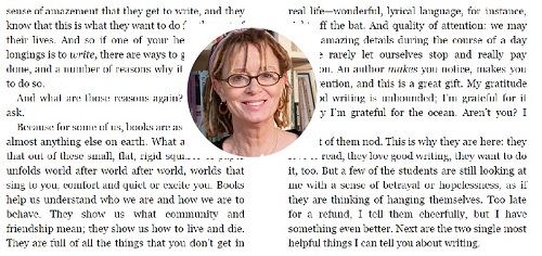 For some of us, books are as important as almost anything on earth. What a miracle it is that out of these small, flat, rigid squares of paper unfolds world after world after world, worlds that sing to you, comfort and quiet or excite you. Books help us understand who we are and how we are to behave. They show us what community and friendship mean; they show us how to love and die. They are full of all the things that you don’t get in real life — wonderful, lyrical language, for instance, right off the bat. And quality of attention: we may notice amazing details during the course of a day but we rarely let ourselves stop and pay attention. An author makes you notice, make you pay attention, and this is a great gift. My gratitude for good writing is unbounded; I’m grateful for it the way I’m grateful for the ocean. Aren’t you?