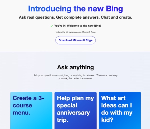 Just remember, for Bing to interact with you in chatbot style, you need the Microsoft Edge web browser — or Skype.
